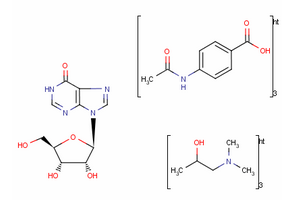 | Synonyms: | Aviral; Delimmun; INPX; Imunovir; Inosiplex; Isoprinosin; Isoprinosina; Isoprinosine; Isoviral; Methisoprinol; NP 113; NTP 10381; Viruxan; Inosine, compd. with 1-(dimethylamino)-2-propanol 4-(acetylamino)benzoate (salt) (1:3); Inosine, compound with (2-hydroxypropyl)dimethylammonium p-acetamidobenzoate (1:3); Inosine-2-hydroxypropyldimethylammonium 4-acetamidobenzoate (1:3); 9-[(2R,3R,4S,5R)-3,4-dihydroxy-5-(hydroxymethyl)tetrahydrofuran-2-yl]-3H-purin-6-one; 1-dimethylaminopropan-2-ol |